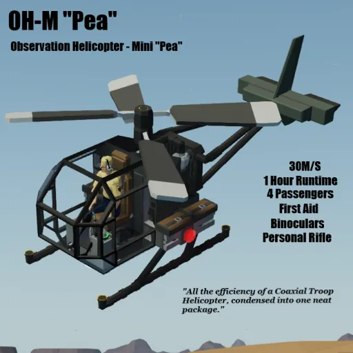 The OH-M was a short 2 Hour project that was sparked from the ether of non-existence. I kept all the controls and whatnot simple on this, that way you can easily digest what is going on and even make your own coaxial helicopters.