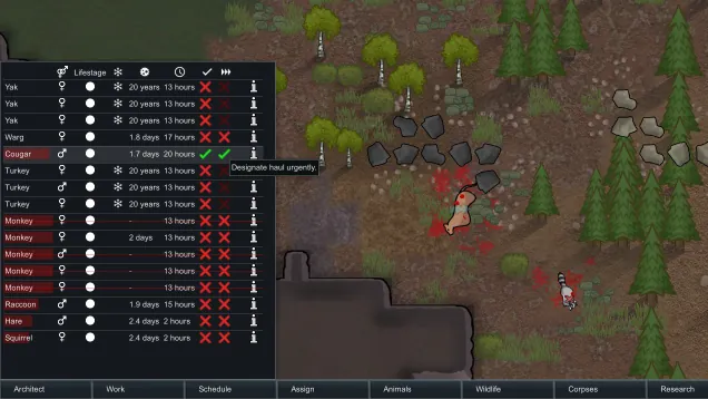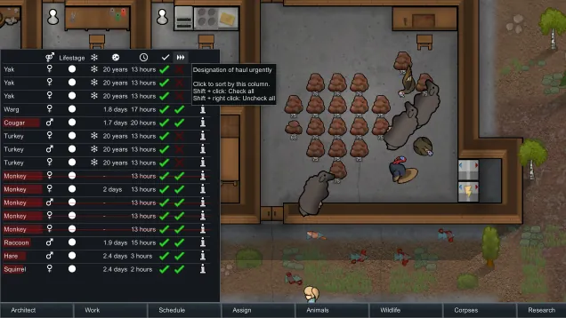 CorpseTabの画面に、AllowToolの緊急運搬を指示できる列を追加します。これにより、必要な死骸をすぐさま取り寄せることができるようになります。