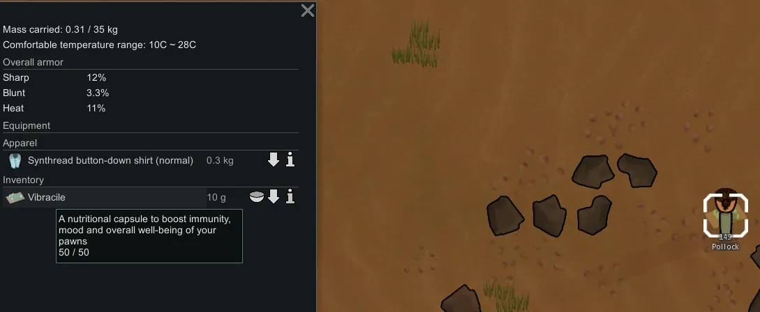 This mod adds Vibracile into the game, a nutritional capsule to boost immunity, mood and overall well-being of your pawns