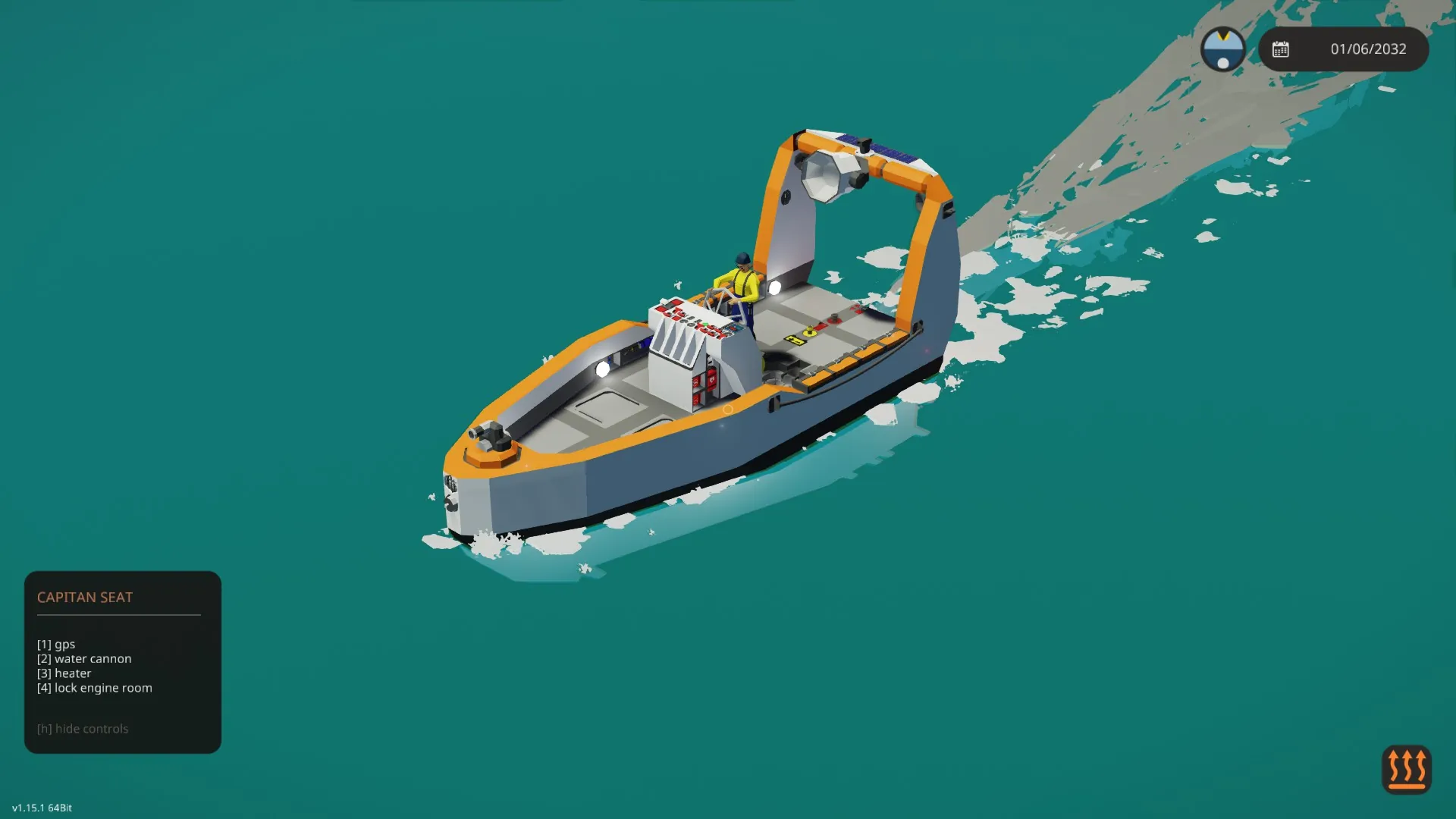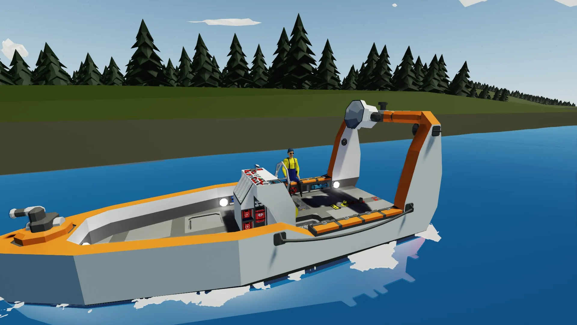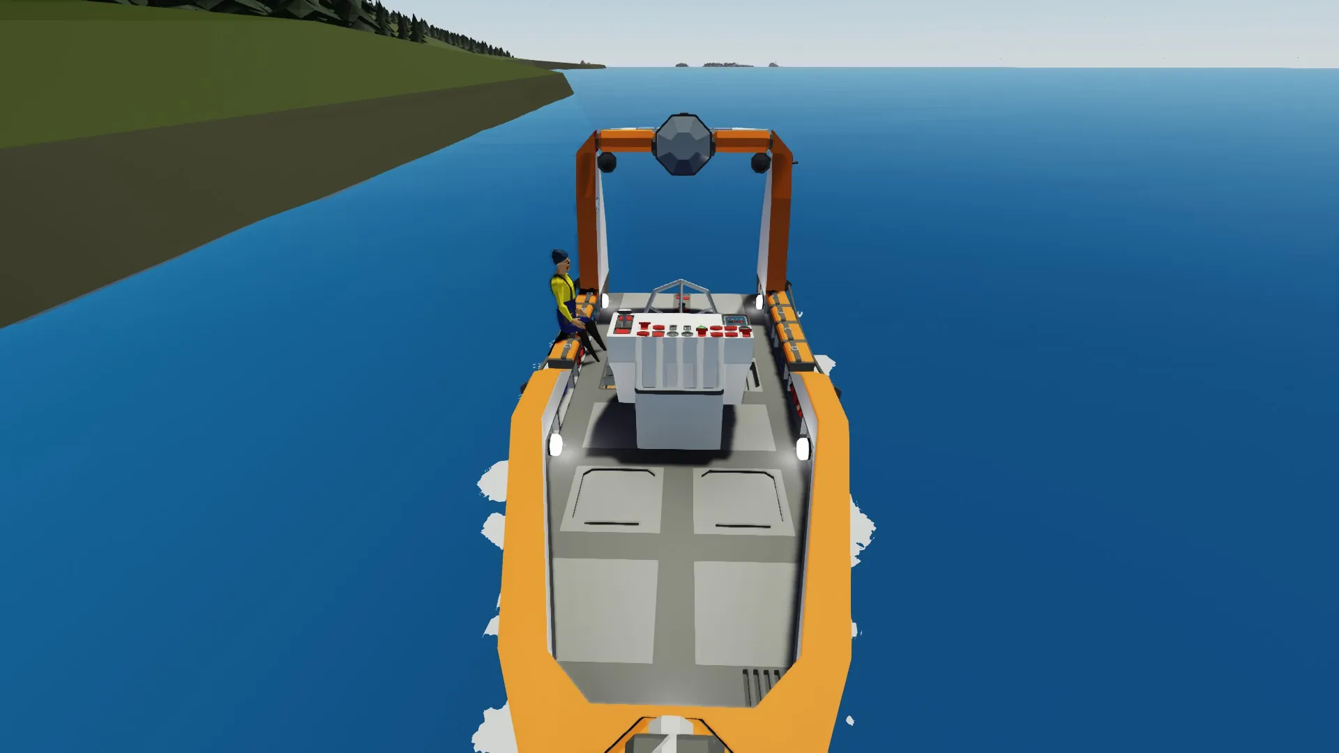 Simple Starter Boat😊 Cost - 22072k Speed - 25 Knots 8 Seats and some equppement. GPS Water Cannon 1.1 Added working Stabilization ->Added Stabilization switch and indicator Moved water dial