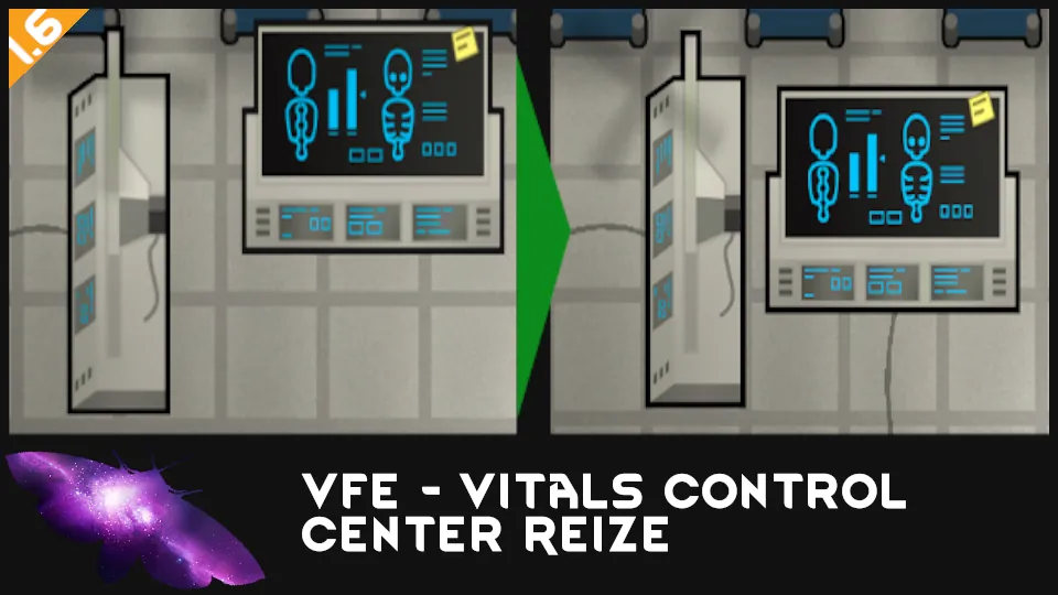 This mod tweaks the size of the Vanilla Furniture Expanded Medical Module's Vitals Control Centre, so it looks better on screen and takes up only 1 by 3 instead of 2 by 3.