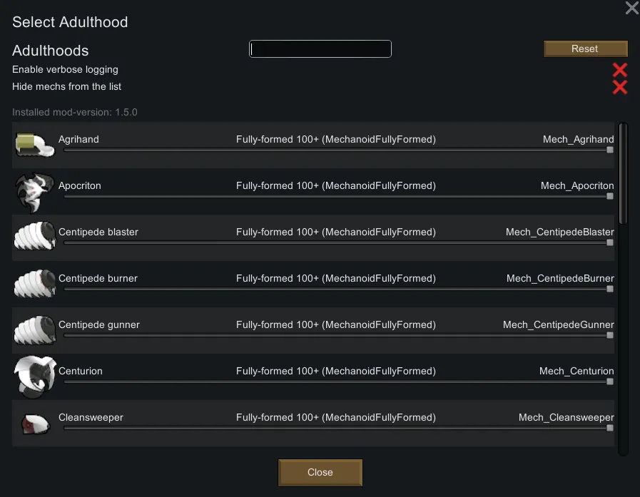 Due to the high amount of mechanoid races added since Biotech, there is a mod-option to hide these in the option-list.