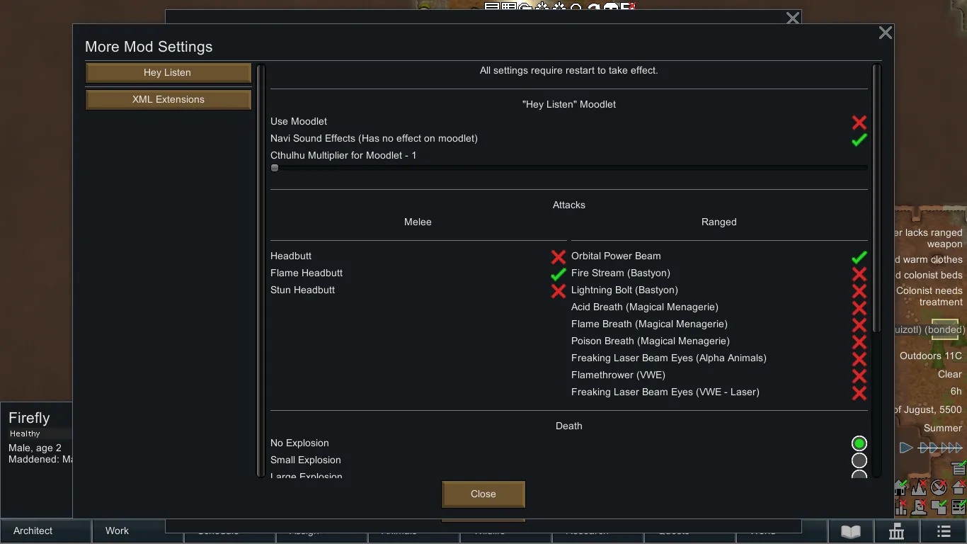 All options are off by default, use the menu under More Mod Settings to turn them on.