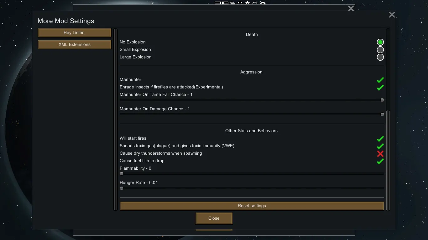 AnimalBehaviours.CompProperties_BuildPeriodically AnimalBehaviours.CompProperties_ChangeWeather AnimalBehaviours.CompProperties_EnrageOtherPawns AnimalBehaviours.CompProperties_FilthProducer AnimalBehaviours.CompProperties_GasProducer AnimalBehaviours.CompProperties_ThoughtEffecter