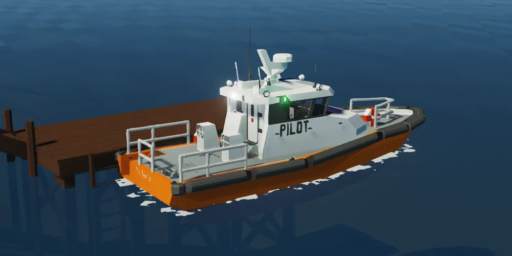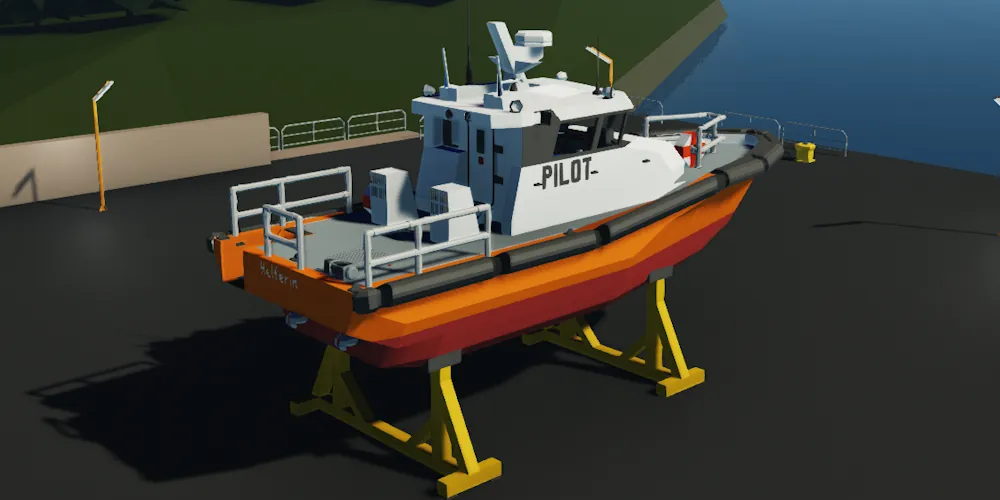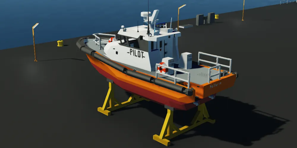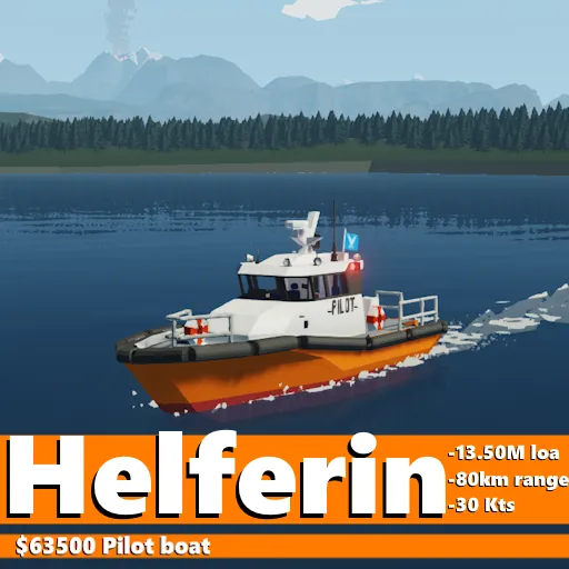 A small pilot boat built to transfer personal between vessels. Helferin is a fluid jet powered vessel, giving her a top speed of 30 knots. She is fitted with bumpers and friction pads to stay securely along side other vessels, which also help to prevent damage.