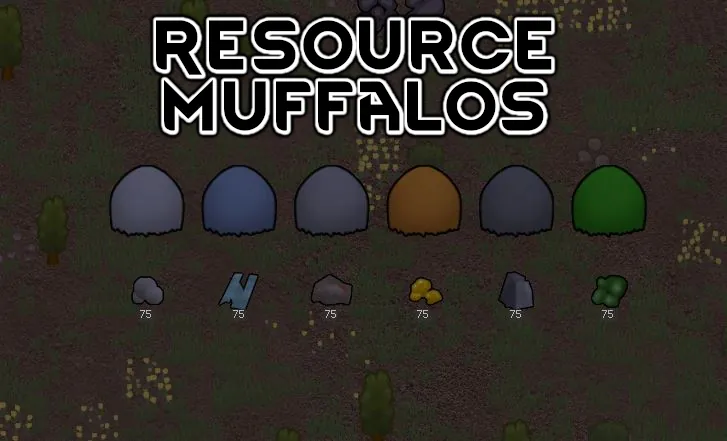 Adds muffaloes that shed resources (Steel, Plasteel, Gold, Jade, Uranium, Stone chunks and Silver).