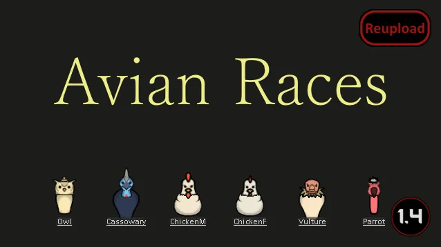[url=https://steamcommunity.com/sharedfiles/filedetails/changelog/2596555190][img]https://img.shields.io/github/v/release/emipa606/AvianRaces?label=latest%20version&style=plastic&color=9f1111&labelColor=black[/img][/url]