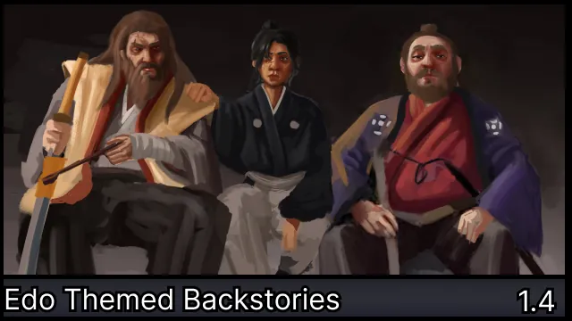 This mod is an add-on for Edo Expansion that adds and distributes 60 total backstories. specifically 26 childhood backstories and 34 adult backstories. I originally intended to release this with the factions update for Edo Expansion but encountered problems that delayed it.