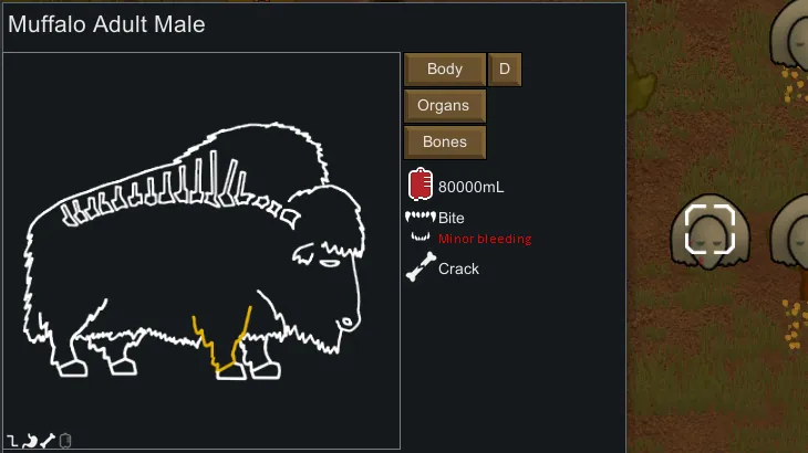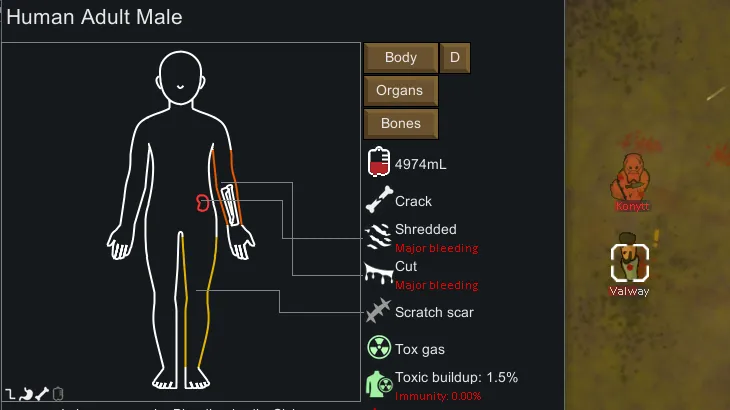 [*] It displays the current blood volume of the colonist or animal, as well as current health effects.