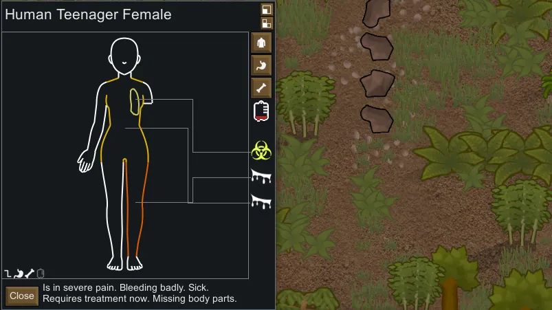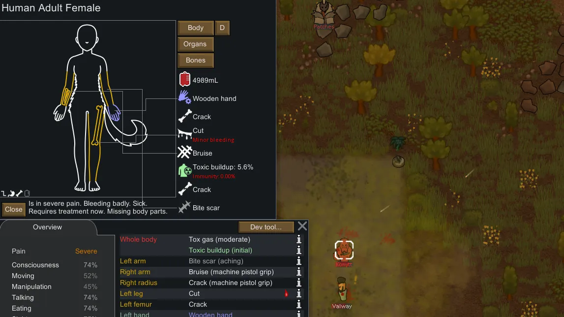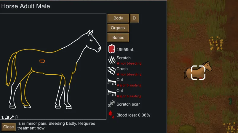 Provides a more visual and interesting UI on top of the Health tab, allowing you to visually see the status of your colonists, animals and mechanoids. It's designed to be lightweight and fit the theme of Rimworld's UI and animals. This does not replace the main Health tab, and can be minimised at any time.