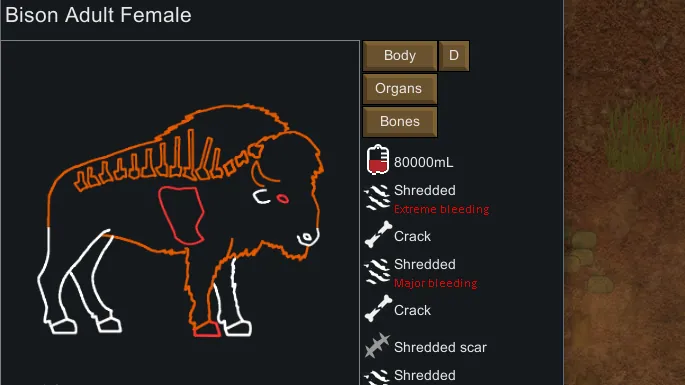 [*] It separates information into multiple layers, so you can check their organs and bones separately, as well as listing the current health effects.