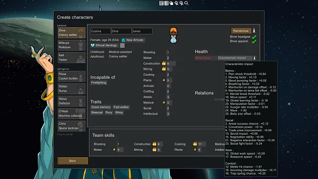 This mod aims to make pawns more unique, to give them their own DNA. Characteristics mean to be the observable expression of a pawn genetic code.