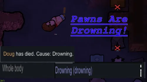 But no, pawns dont drown in vanilla rimworld. Thats what this mod is for. Now, rivers are more than just a free moat for your castle, they are a double edged sword; they will slow the enemy, like in base rimworld, but any pawn incapacitated in a river, or other aquatic tile, will quickly (or slowly depending on mod settings) drown too death. Better breathing capability will help a pawn hold his breath a bit longer, but you best be quick if you see one of your own colonists going under the waves!