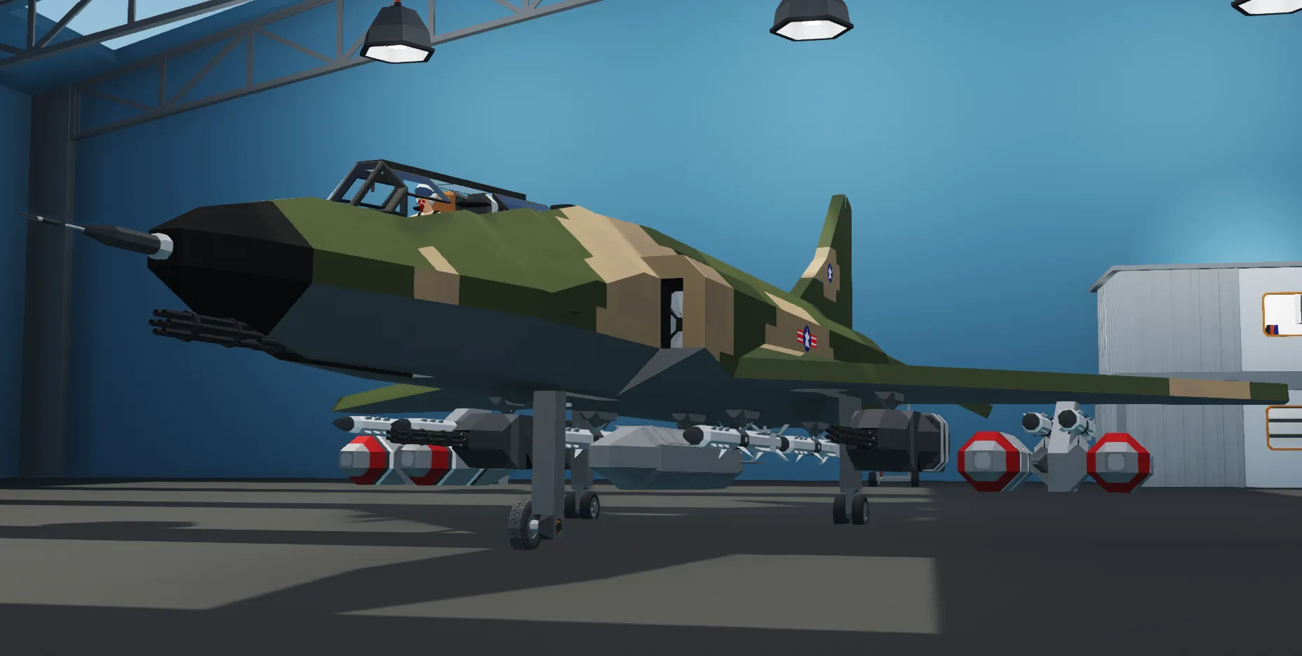 This is a classic F4 phantom II that I've built, it is based of the F4C phantom II (USAF). It is an fighter/bomber ground attack. it is an modular build so you can modify it's armament (BUT DO NOT UPLOAD/POST IT!) so have fun!