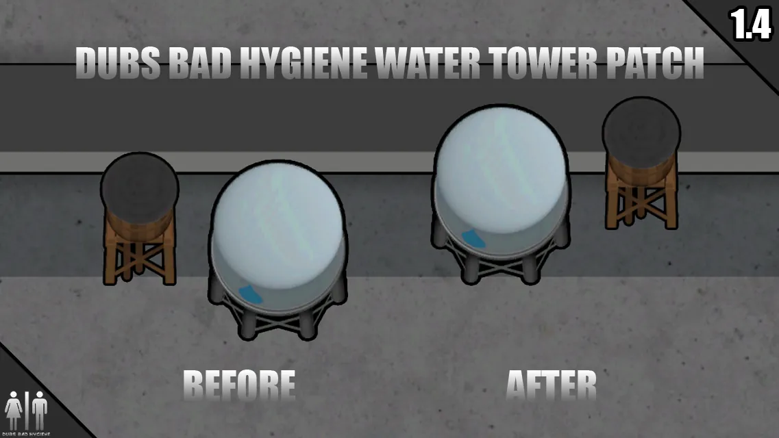 Changes the collisions of the water towers. Load after Dubs Bad Hygiene mod! Compatible with existing save and other mods.