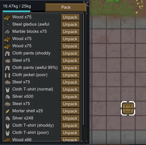 Crates are a simple way to pack up a bunch of items for transport on caravans to camps or colonies. You can mass pack/unpack to designated areas, or pack/unpack specific items to specific locations. Colonists can't directly access the contents, so you'll have to remember to unpack if they need something, but on the plus side, a colonist can quickly pack up a bunch of items, and then move them all to a herd animal/transport pod at once, rather then taking 20 trips.