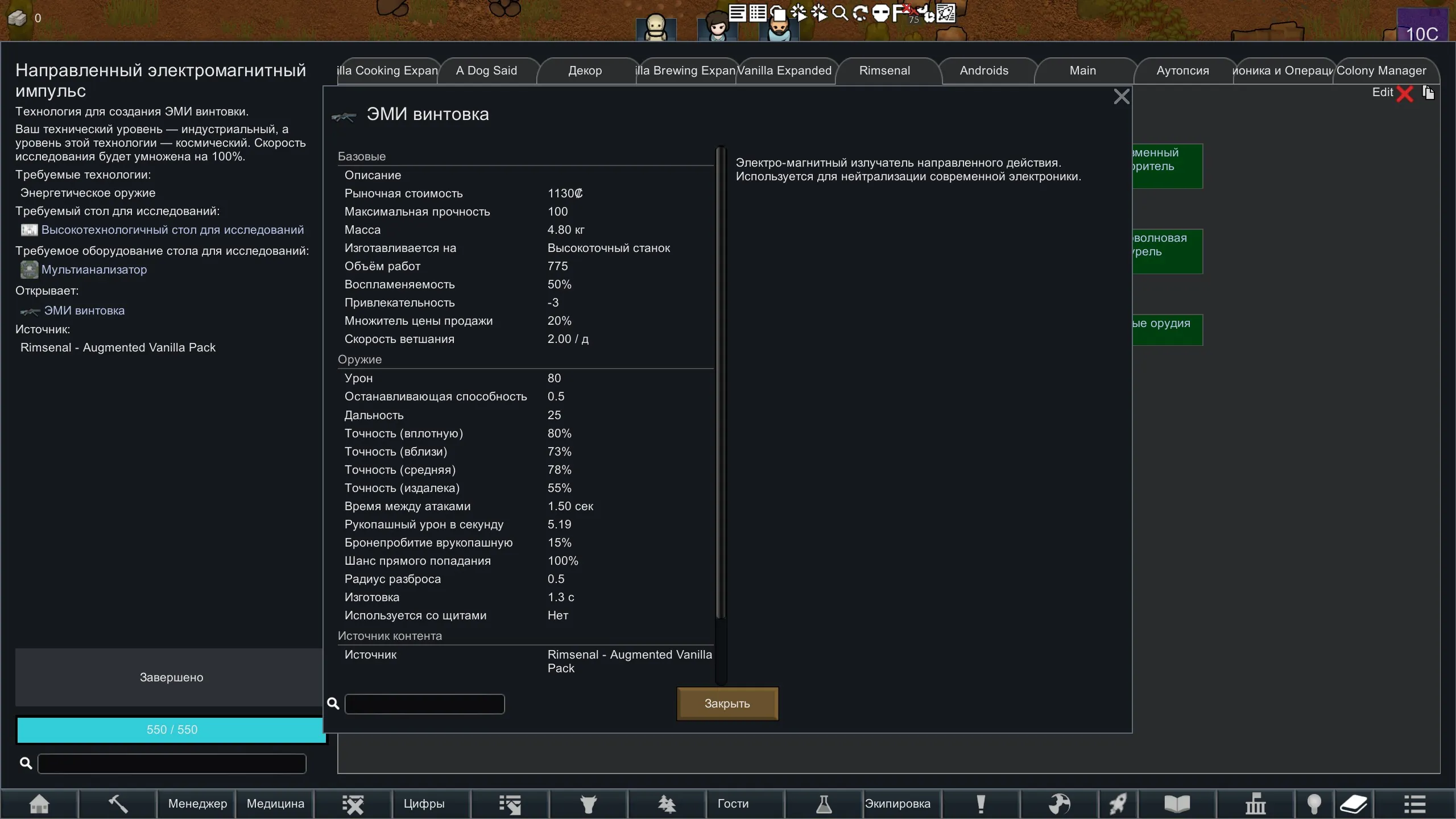 Любительский перевод на русский язык мода [url=https://steamcommunity.com/sharedfiles/filedetails/?id=849231601]Rimsenal - Augmented Vanilla Pack[/url]