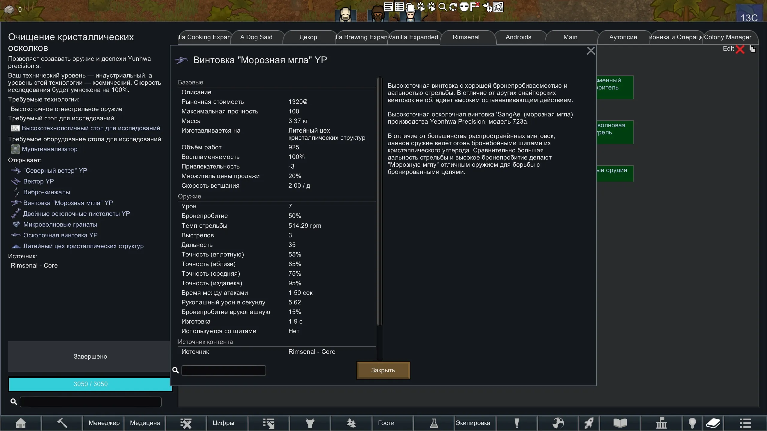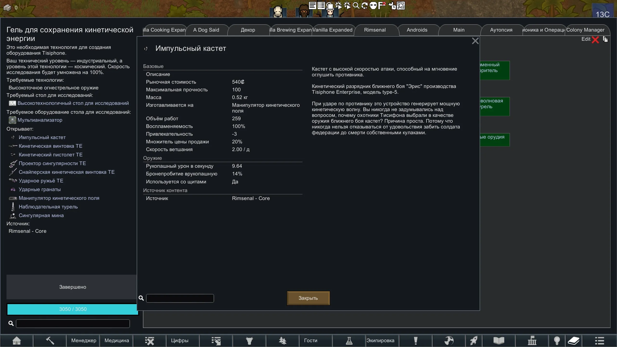Любительский перевод на русский язык мода [url=https://steamcommunity.com/sharedfiles/filedetails/?id=725947920] Rimsenal - Core Murder Diversified [/url]