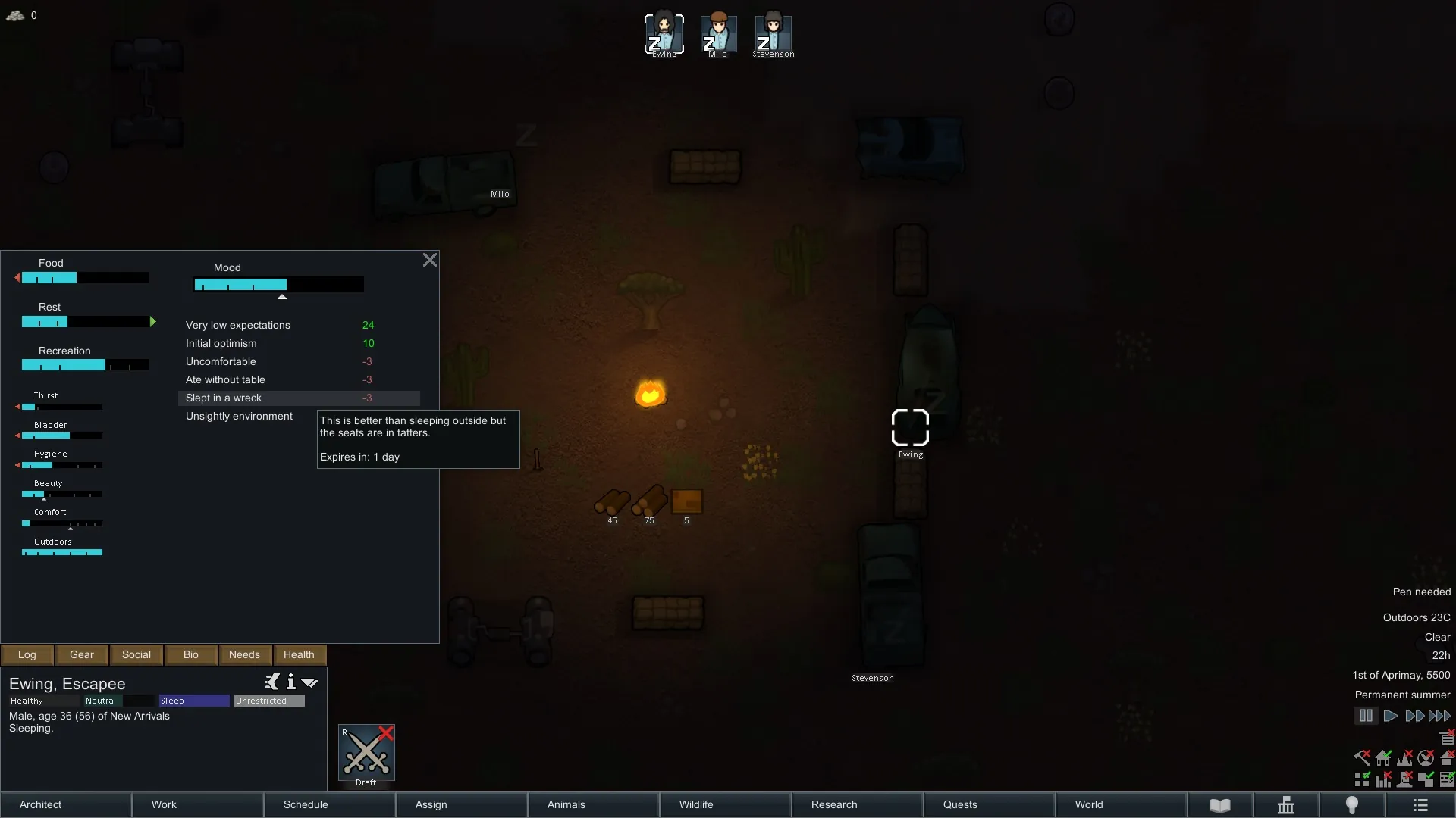 With the power of Aoba's tent mod and Tynan's decision to throw cars all over the place it's time to sleep in a wreck. Scrapped cars, APC's, Humvees and Tanks, they can all be your new tent and while not as comfy as even a primitive tent they'll prevent the slept outside and slept on the ground moodlets and will provide 10 degrees of insulation from the cold.