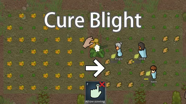Add an order to mark blighted plants. Your colonist will go to cure the blighted plants whitch has been marked. It will take some more time than harvest, the curing speed depend on plant work speed.