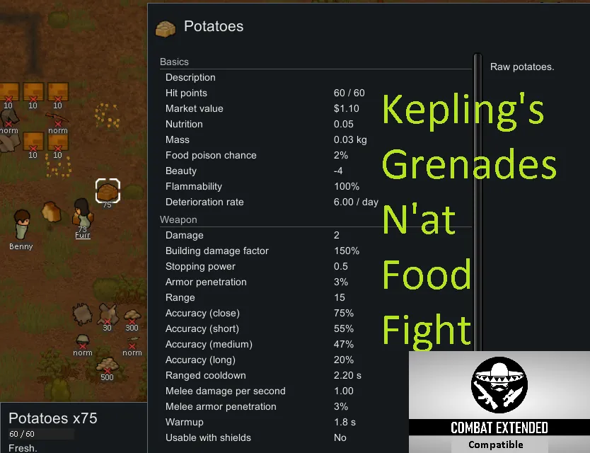 Makes some food items throwable weapons, with a menu option to change the verb. This is a stand alone mod in the GNAT series.