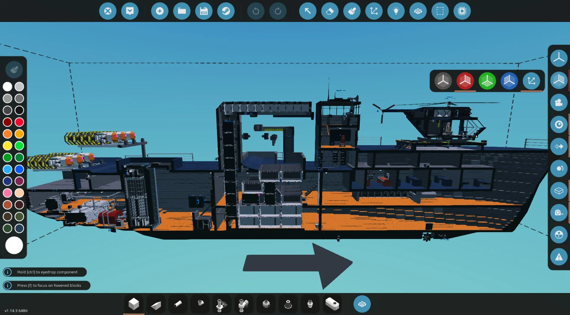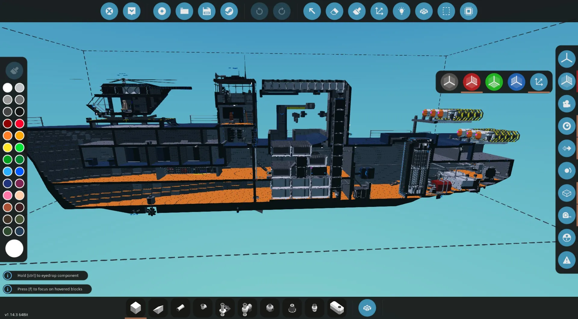 Massive Fishing Boat with modified crab baskets from MRNewJersey, they have a max drop depth of 40m. It has 2 fishing cranes and 1 main crain that is used for crab baskets but can be used to unload fish and change the fuel rods. Powered by a nuclear reactor and turbines, giving it nearly infinite run time. AC/Heat to crew cabins alongside a medbay.