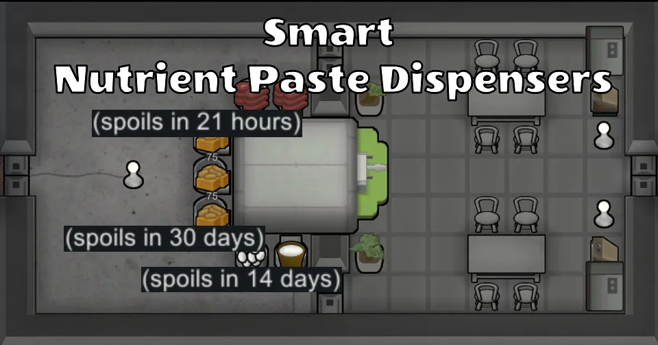 If you have different types of food in different food hoppers, it seems kinda random how the nutrient paste dispenser chooses which hopper to use to produce a meal, doesn't it? And shouldn't colonists have control over which hopper is used at any given time?