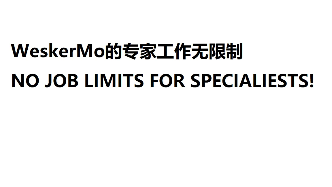 SPECIALISTS,NOW DO YOUR FXXX JOBS! 解锁所有专家工作限制,拿去爽。 No more job limits for the specialists. update: Removed the melee and shooting specialists' weapon limit.
