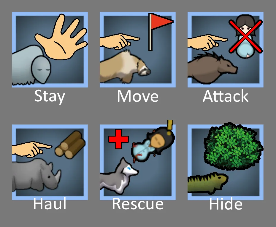 ・Lead -Move-:Instruct all the animals in the colony to move to the target position.