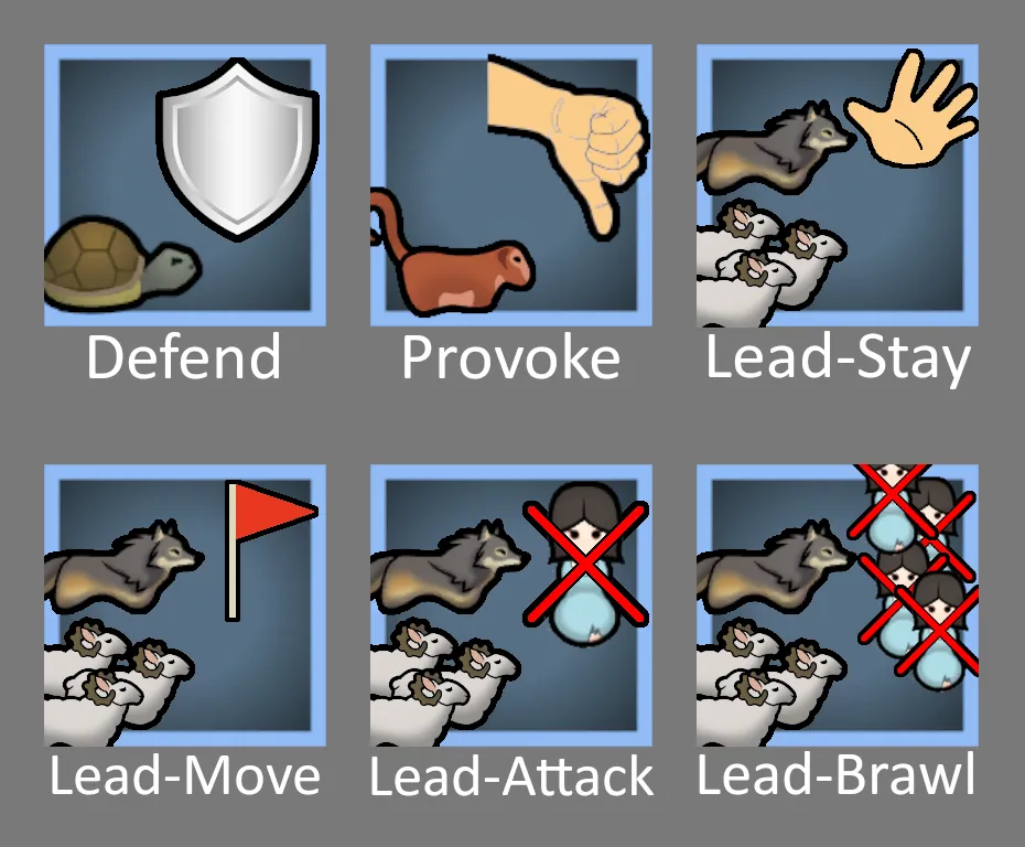 ・Lead -Brawl-:Instruct all animals in the colony to attack the surrounding enemies at random.