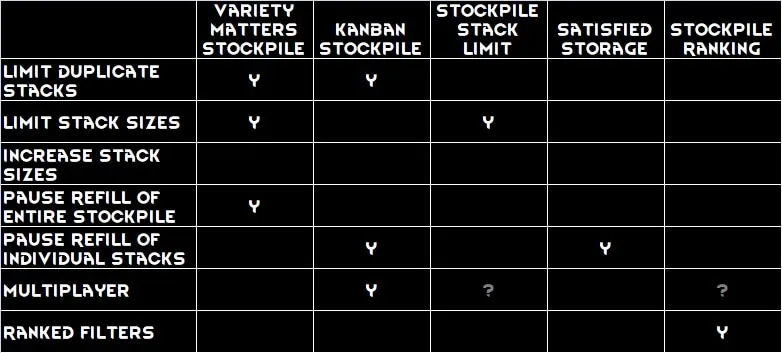 [b]Stockpile Stack Limit:[/b] Not compatible (feature was incorporated with modification).