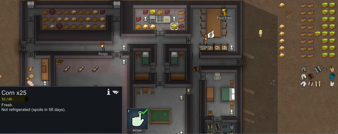 For vanilla uses, you can create a food shelf in your dining room that won't refill until the shelves are empty, saving hauling time and helping meals get eaten before they rot; or give your pawns' closets with only 1 of each type of clothing.