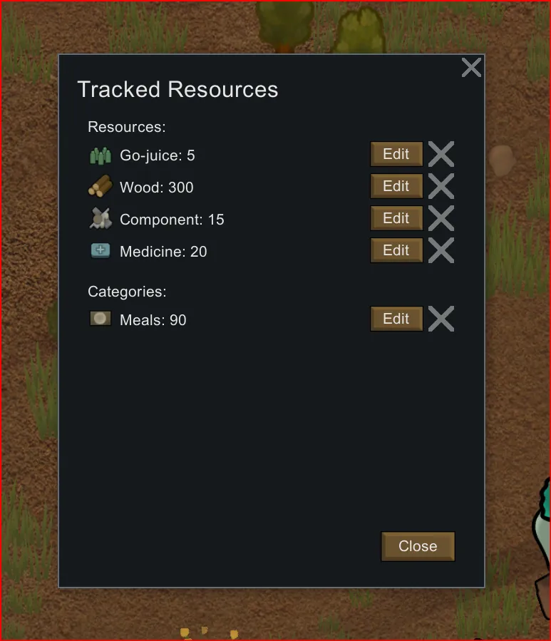 [*] New Tracked Resources summary window: edit or remove tracked items, even if they’re not on the current map.