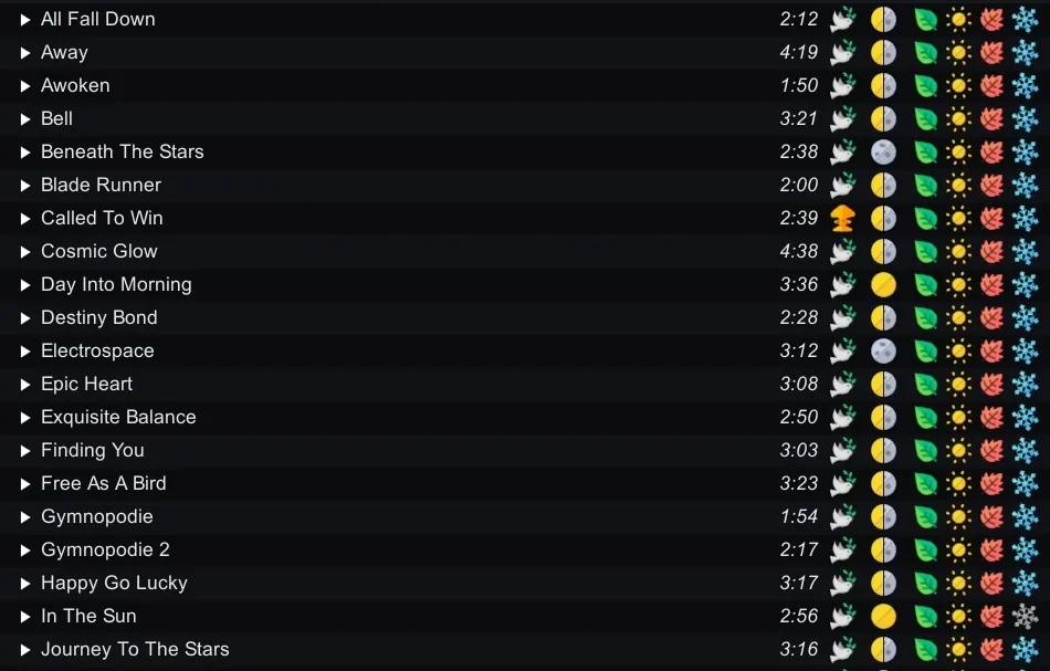 Thanks go to Kayedon for helping me curate the songs and find areas that were in need of editing