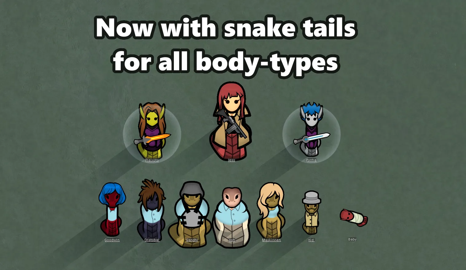 See "Issues" section in the Big & Small Races dependency mod if the headsize of the slightly smaller/larger snakes look strange.