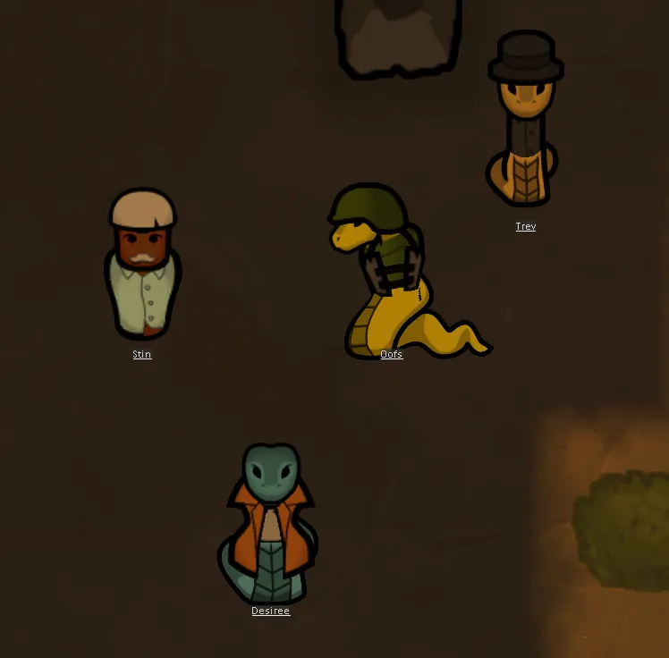 This loose federation of various snakefolk of former enemies have united against their more dangerous common foes. They lack most of even the most simple tools, making even the Neanderthals look fairly advanced. They regard all outsiders with suspicion if not outright hostility, but they are sometimes willing to trade scavenged goods.