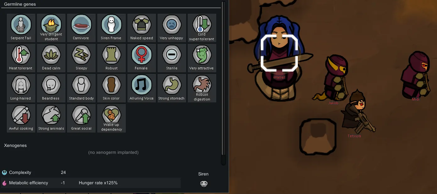 The mod adds several genes, though most only spawn on their related xenotypes. Here are two of them.