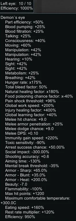 Adds new eye implant that makes your pawn pretty OP. It can be crafted, but its really costly and requires Bionics research.