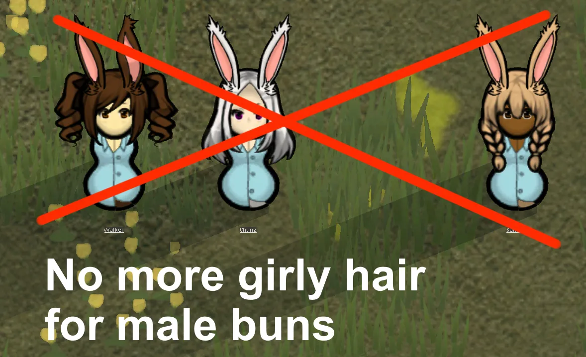 Male buns now have short-hair hairstyles only. (Bun_short_1, Bun_short_2, Bun_short_5)