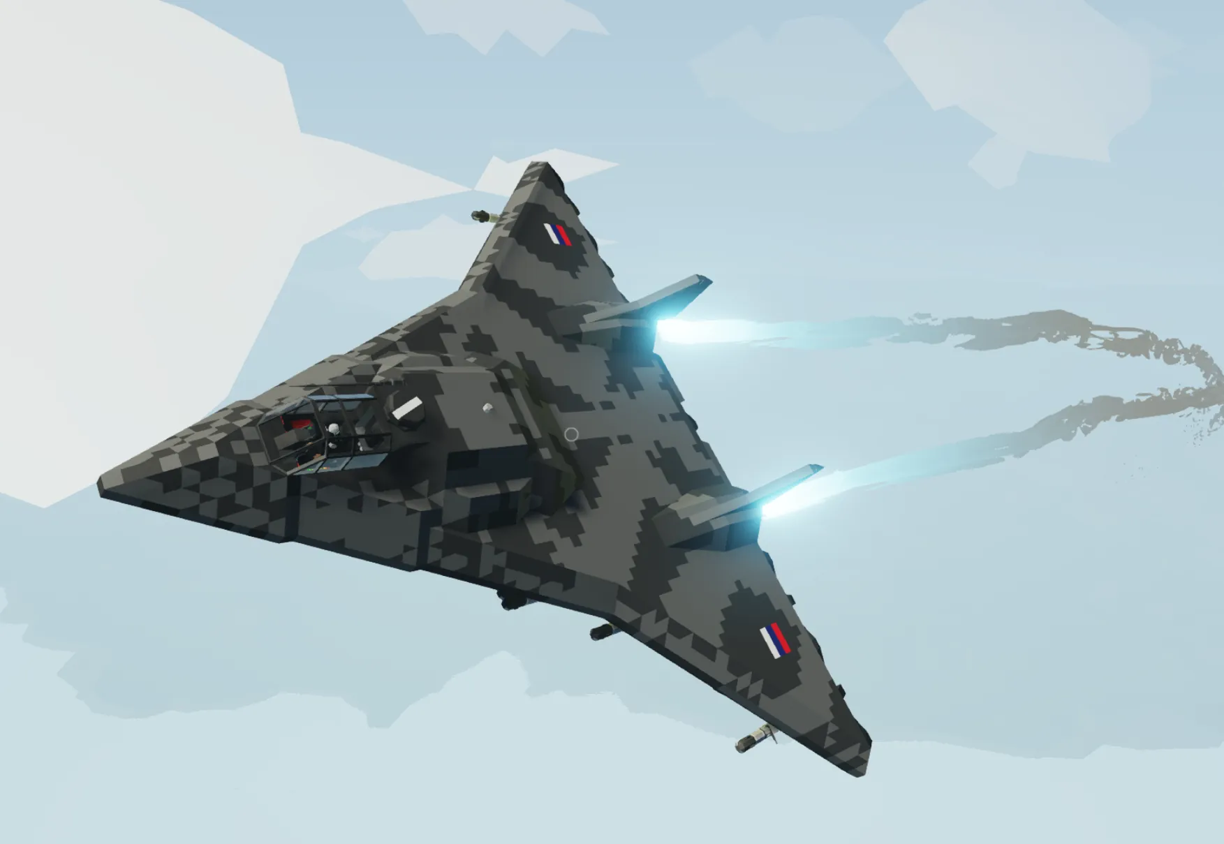 Basically I wanted to make 6th or 5th gen fighter jet, but there were some problems with missile bay, and also there is impossible to make stealth in stormworks for now, so I just did what I did. There is a problem with going nose down, but it's not a big deal for me, and if you know how to fix it, I all yours to listen to you :)