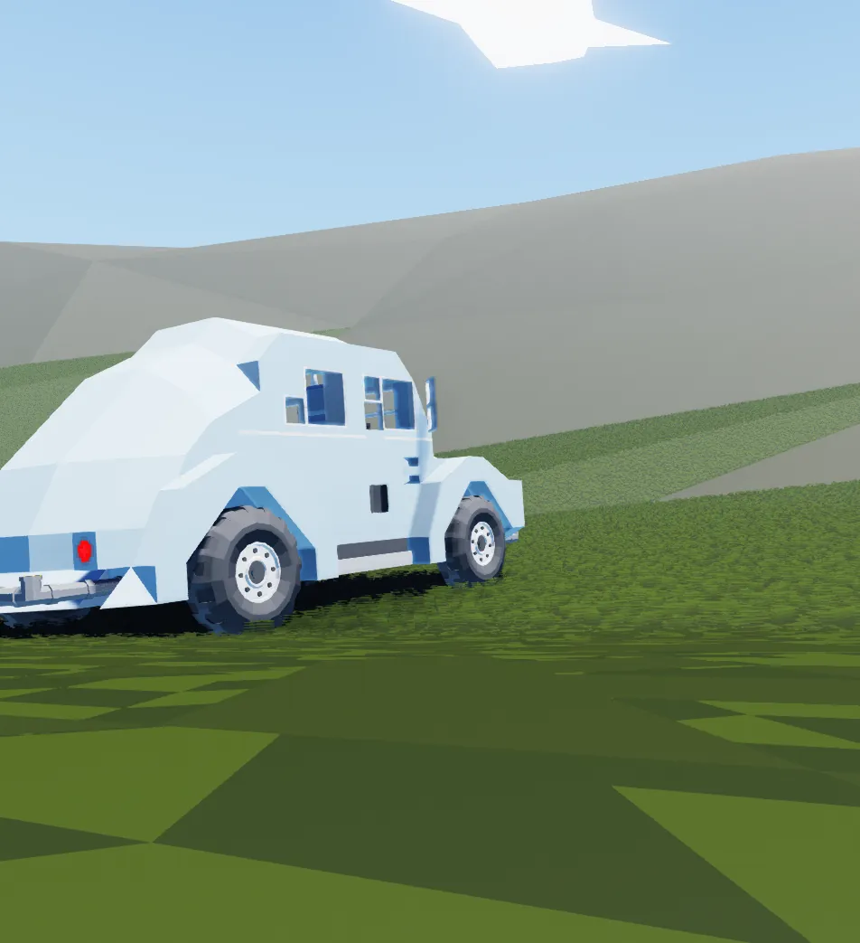 Okay, I will admit, it's a teensy bit janky. It is by some means polished, but I would not recommend this beetle for career or whatever. It is, however, like most of my vehicles, weirdly good at off-roading. It does not use a modular, instead an electric and some batteries. Believe me when I say this, I try to make modular engines. Anyway, this blue Volkswagen Beetle was based off of the older models, leaning towards a vintage approach. For the 2 shots included, I used the Opal grass only module and the Sunrays mod for a whimsical, bright feel.