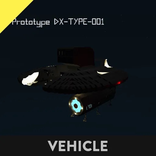 The Prototype DX-Type-001(DX-1 for short) is an experimental aircraft engineered by the Pan-Terrian Corporation in the late 21th Century . There is actually only one copy of this vehicle,currently stored his dedicated hangar .