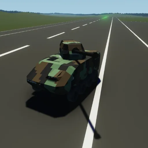 -A finnish Patria AMV CT-CV 105HP vehicle. -Top speed is about 100Km/H and turntime is pretty good. -Manual gun shooting and loading!