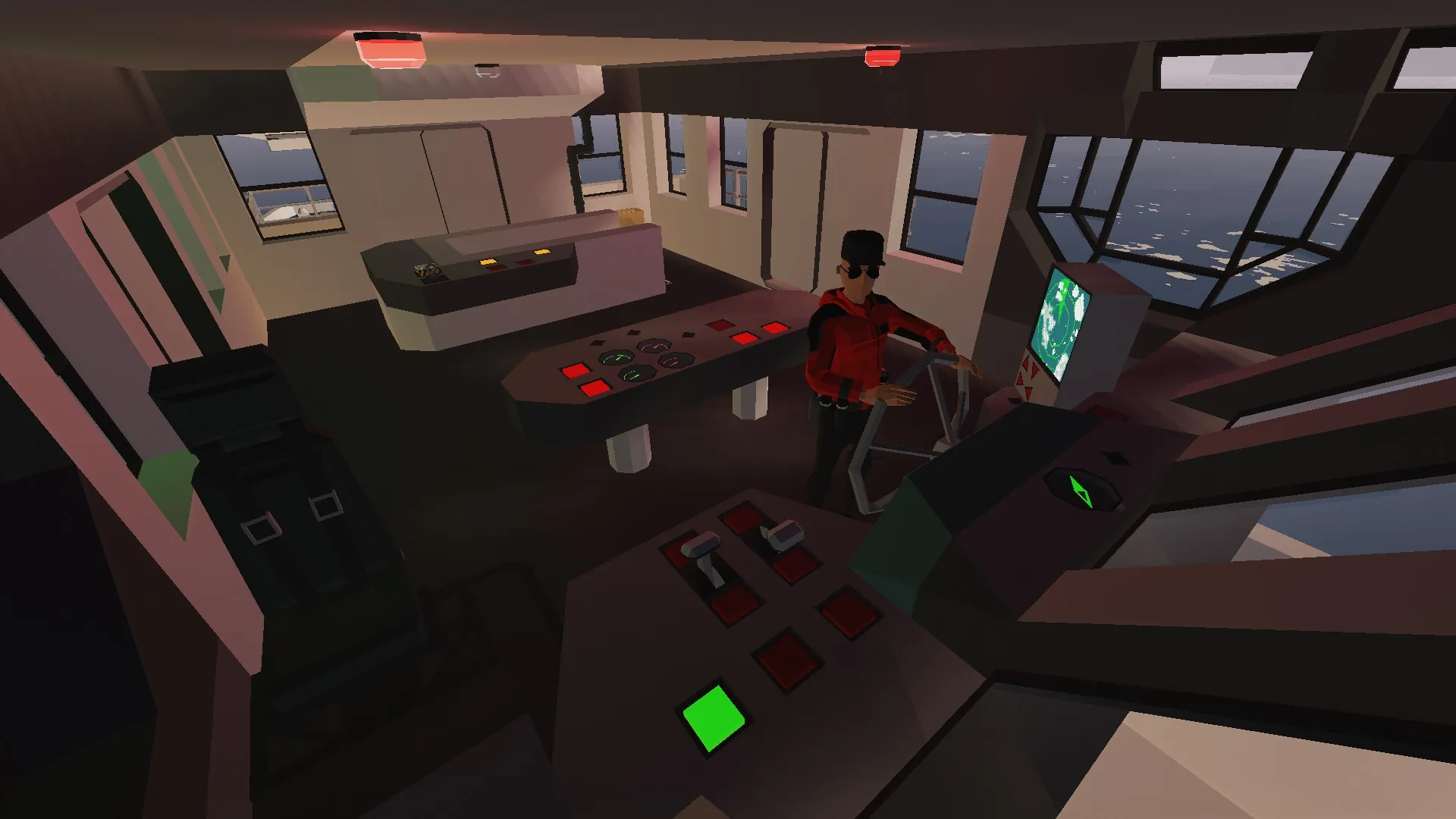 Behind the helm in the ship's bridge, turn on cooling systems, then fuel systems and press the starter