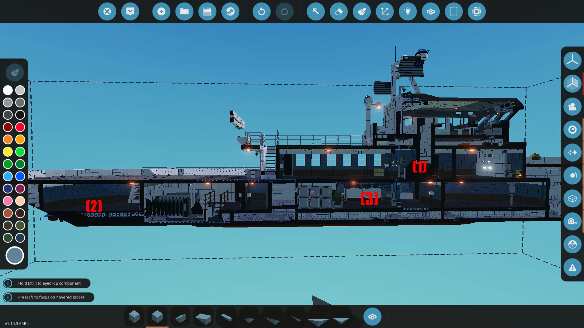 There is also two fluid tanks, two separate hopper storage thingys, an AUX fuel tank and a fluid pump in the middle room on the bottom deck (3)
