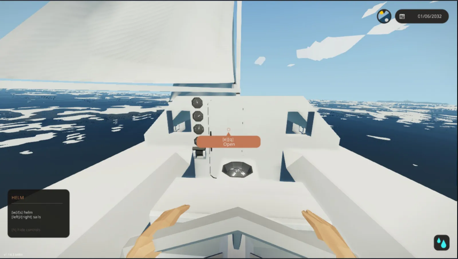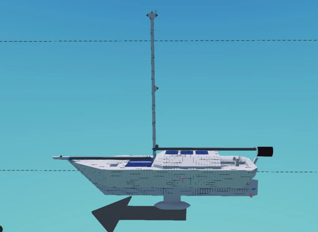 a/d helm left/right sails rails/lower sails sails and helm are sticky controls reasonably balanced Bermuda-Rigged Sloop needs an interior!