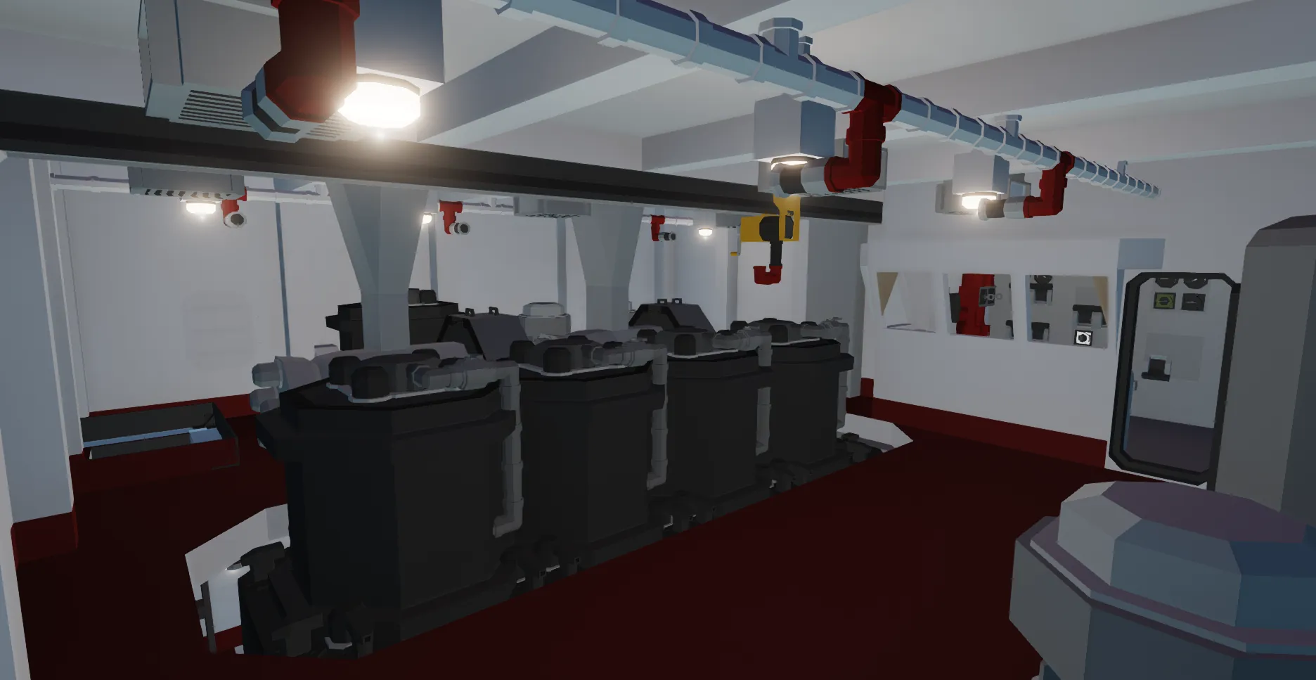In terms of damage control there are welders and fire-extinguishers scattered throughout the ship, especially in critical areas, so trouble can be quickly addressed, you'll find the welders for the engine room on the aft bulkhead of the lower deck.