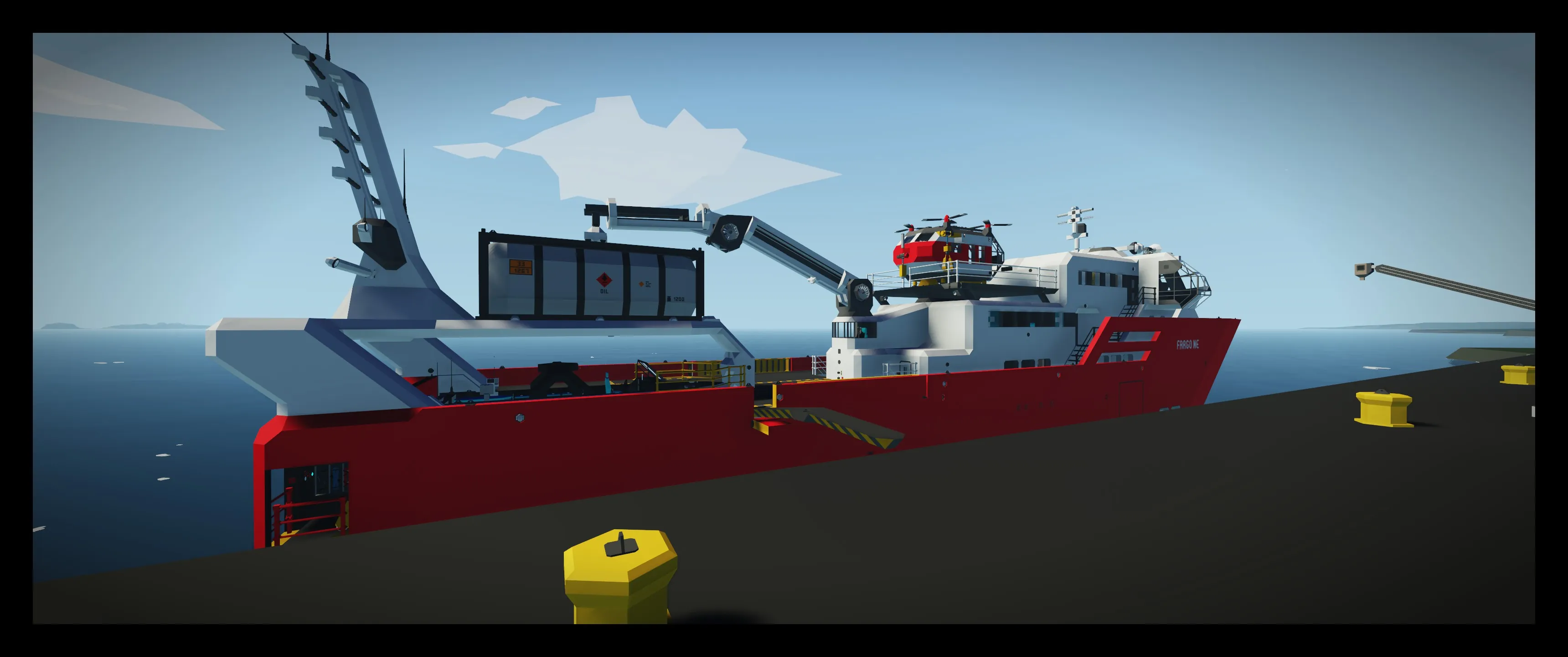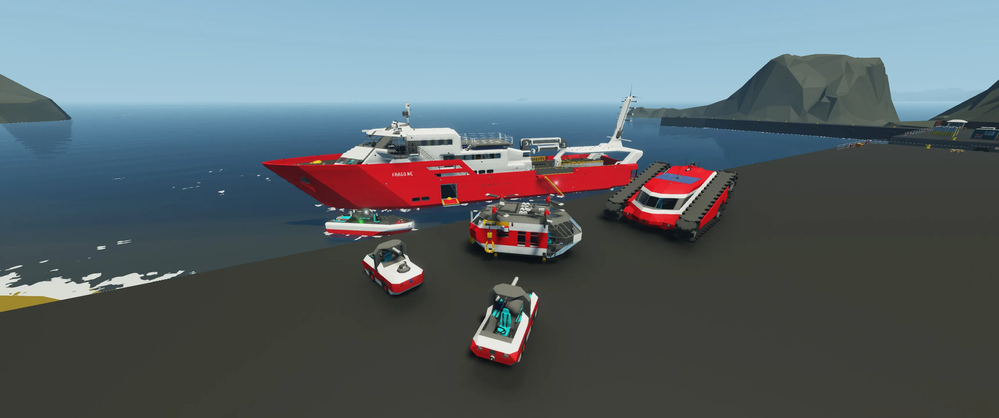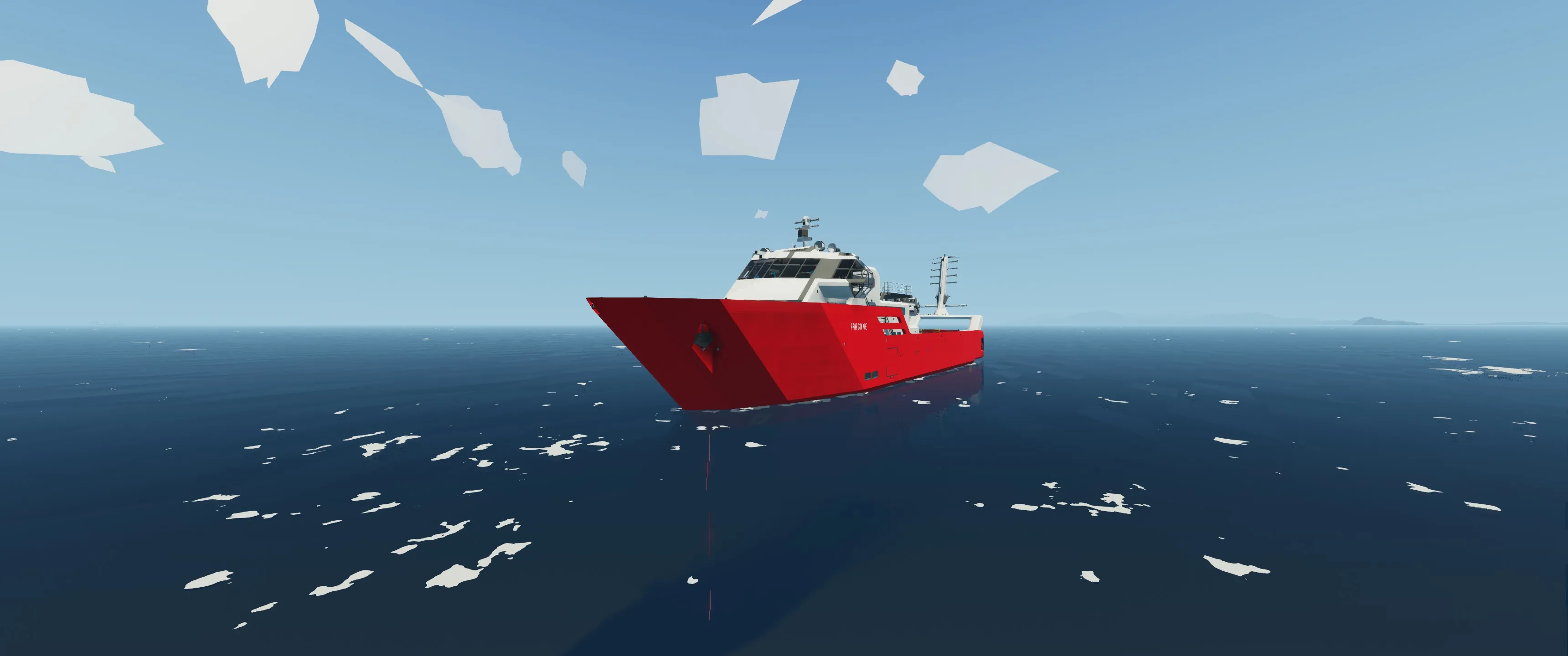 The Fargo Ne is a Search and Rescue ship with nuclear propulsion and a sleek and modern design. With highly automated systems she can be operated by a single person and is capable of reaching a topspeed of more than 90 knots in clear conditions.