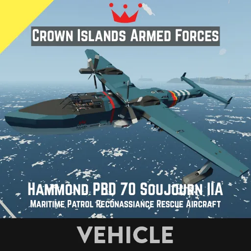 A long range maritime patrol bomber and seaplane built by the fictional Hammond Company. Features 8 wing mounted bombs, airborne firefighting capabilities, deployable search and rescue package, waypoint navigation, and a maritime search camera. Can be fully operated (excluding the observer's camera) from the pilot seat but is best utilized with a crew of 5. Aircraft livery and insignia represent the fictional Crown Islands Coast Guard Service.