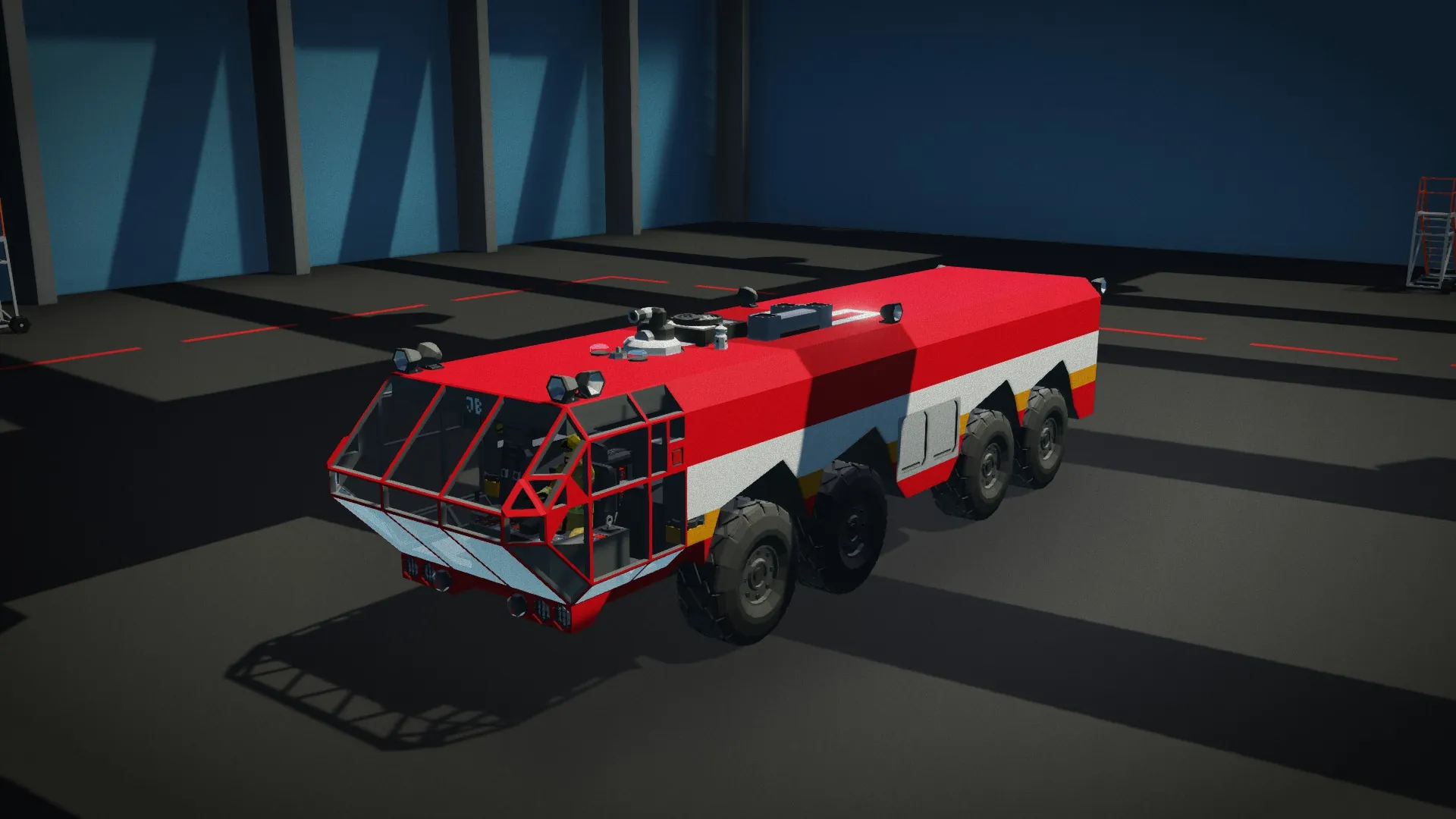 The JB Sparrow is at the moment the crown jewel of my firefighting collection. This monster of a truck features 8x8 wheel drive, a large field of view provided by the style of cabin, seating for 4 firefighters, 1 water cannon operator and a driver and of course all have access to an SCBA suit. The truck is intended for fighting large fires like aircraft crashes, it can also fight wild-fires although it isn't designed with off-roading in mind. The truck can be rapaired with every part destroyed, that is if you have enough welding torches of which the vehicle has two, it also offers a backup generator to power the engine starter in case of a battery destroying crash. Huge thanks to 454ss for providing the microcontroller for the modular engine.